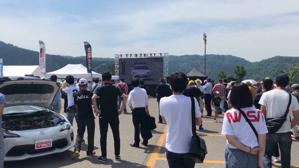 スキー場で行われた、ラリーのLIVEビューイングで、