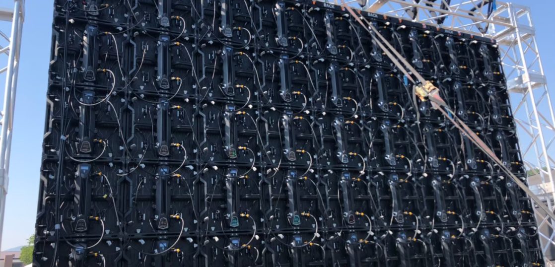 ジニーを使いトラスを組み、ビジョンを吊り金具で吊りました。