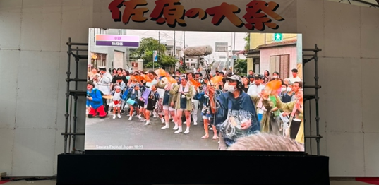 佐原の大祭にて横4.5m 縦2.5m 屋外用3.9mmピッチのLEDビジョンと カメラによるYouTube配信をご提供し