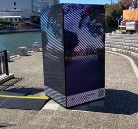 徳島にて横1m 縦2mの四角柱のL E Dビジョンを設置しました。 今回は特殊な形となっており様々な方にご観覧いただきま